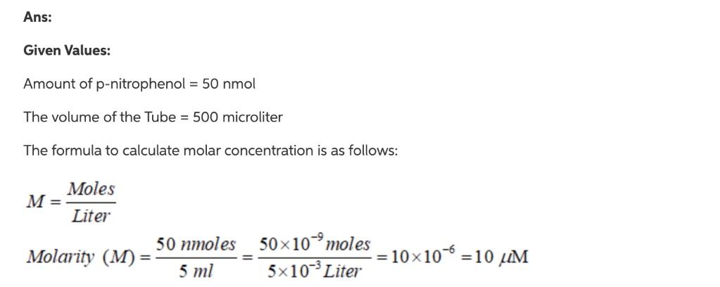 Solved Calculate The Concentration Of P Nitrophenol Um And Chegg Com